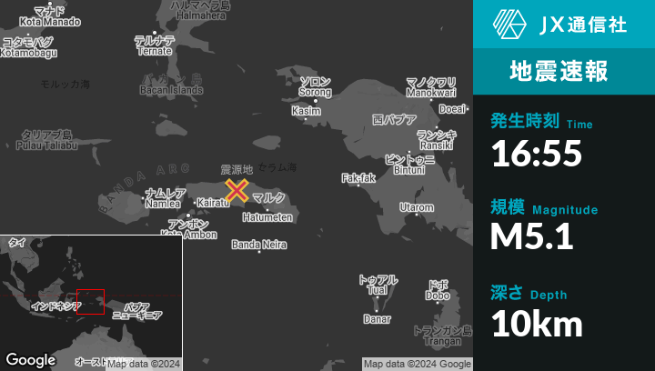 | 震源地 | インドネシアのMasohiから北東59kmの地点 |