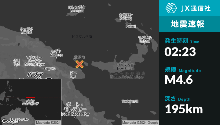 | 震源地 | パプアニューギニアのFinschhafenから北北西118kmの地点 |