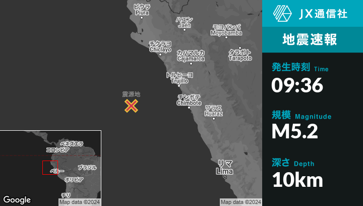 | 震源地 | ペルーのSantiago de Caoから西南西230kmの地点 |