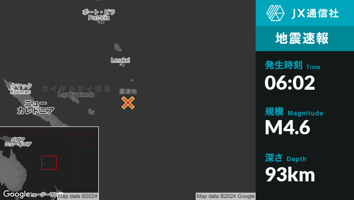 | 震源地 | バヌアツのIsangelから南南東167kmの地点 |