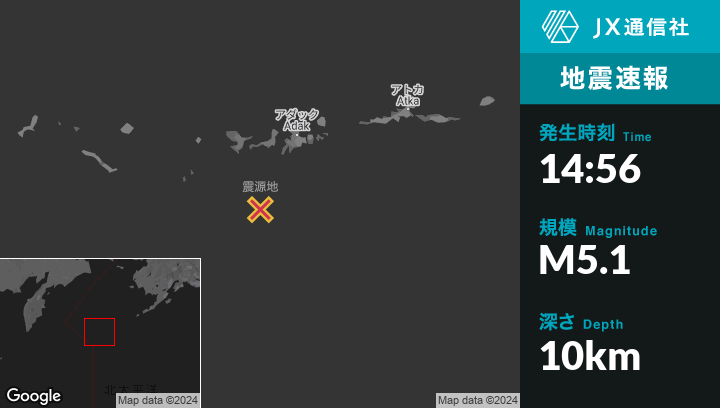 | 震源地 | アラスカのAdakから南南西120kmの地点 |