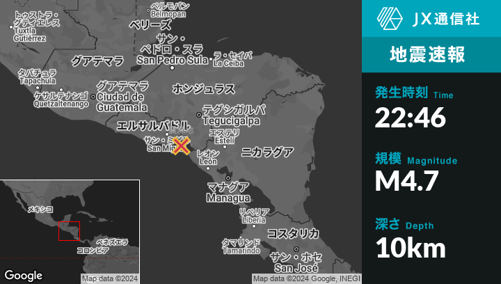| 震源地 | ホンジュラスのAmapalaから南西11kmの地点 |