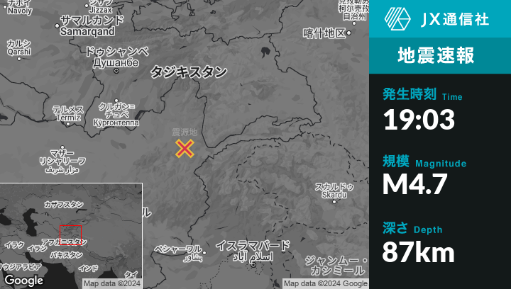 12月10日 19:03頃、アフガニスタンのJurmから南南東14kmの地点でM4.7の地震がありました。