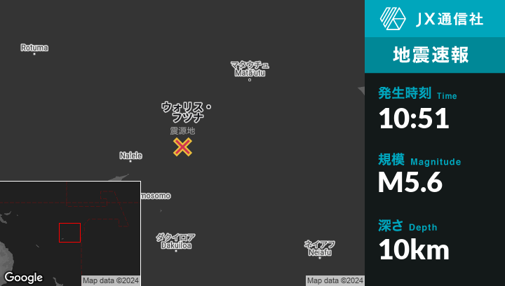 12月12日 10:51頃、ウォリス・フツナのAloから南100kmの地点でM5.6の地震がありました。