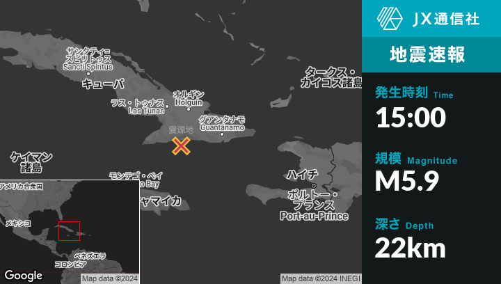 12月23日 15:00頃、キューバのGuisaから南37kmの地点でM5.9の地震がありました。