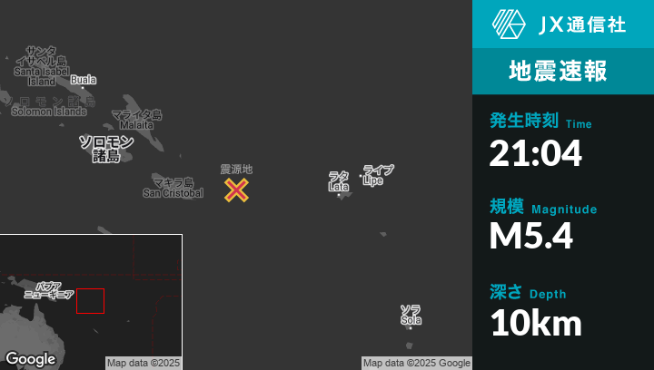 | 震源地 | ソロモン諸島のKirakiraから東152kmの地点 |