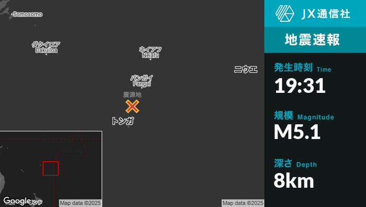 | 震源地 | トンガのPangaiから南南西81kmの地点 |