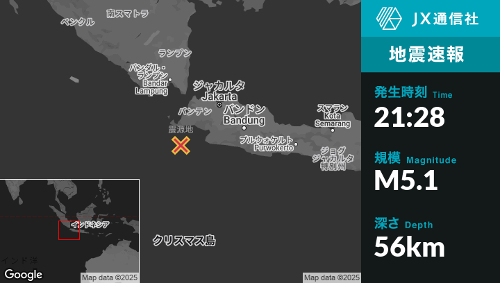 | 震源地 | インドネシアのLabuanから南南西109kmの地点 |