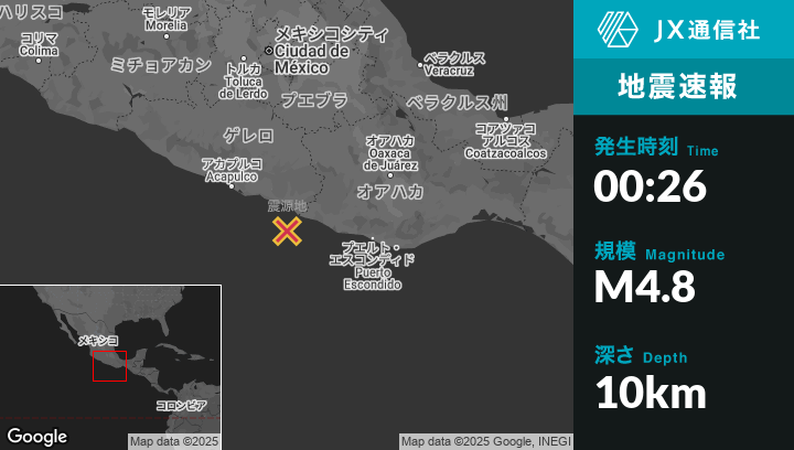 | 震源地 | メキシコのMontecillosから南西43kmの地点 |