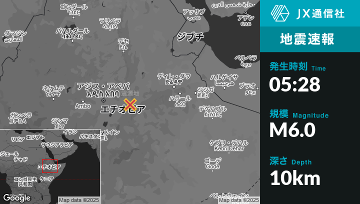 | 震源地 | エチオピアのMetahāraから北北東6kmの地点 |