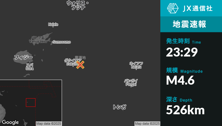 | 震源地 | フィジーのLevukaから東287kmの地点 |