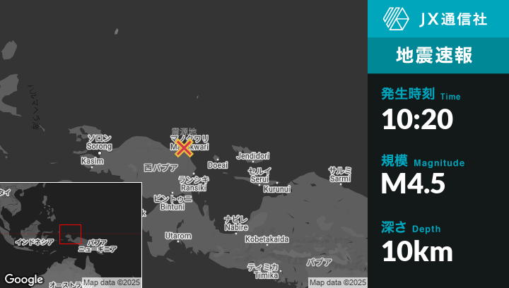 | 震源地 | インドネシアのManokwariから北西35kmの地点 |