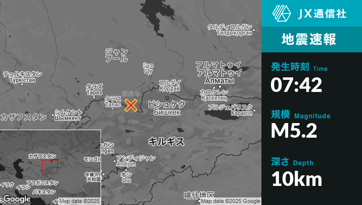 | 震源地 | カザフスタンのMerkeから南西22kmの地点 |