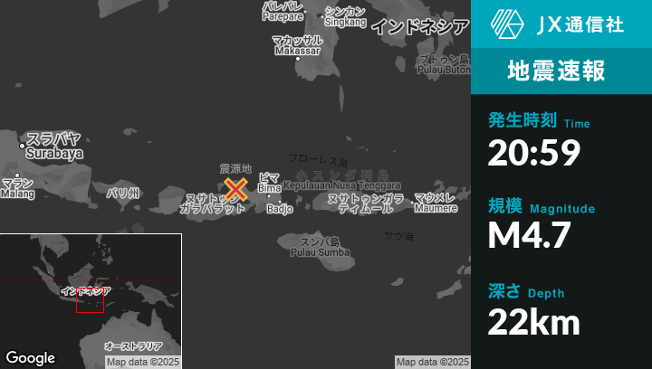 | 震源地 | インドネシアのPototanoから東北東54kmの地点 |
