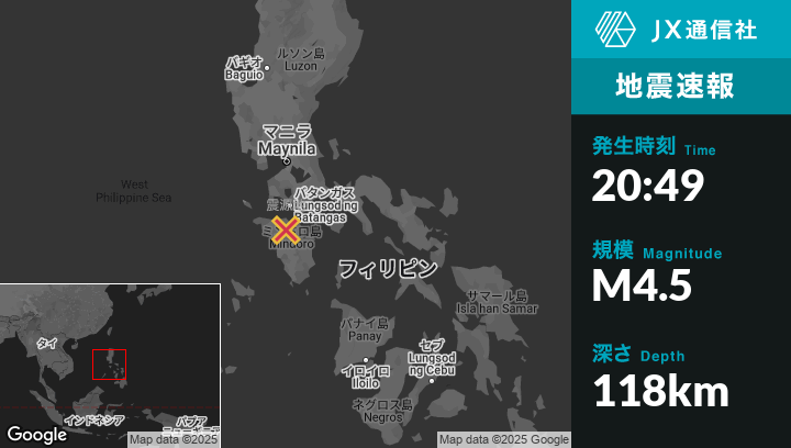 | 震源地 | フィリピンのLumangbayanから西南西8kmの地点 |