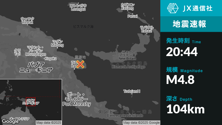 | 震源地 | パプアニューギニアのFinschhafenから西北西56kmの地点 |