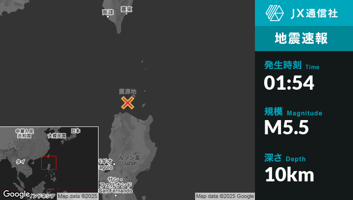 | 震源地 | フィリピンのNamuacから北58kmの地点 |