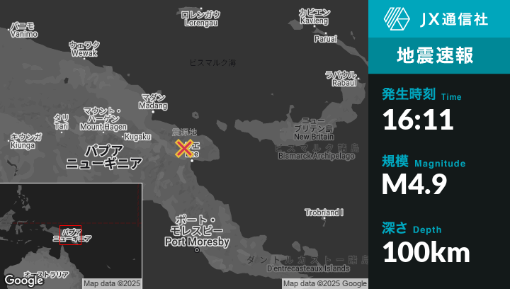 | 震源地 | パプアニューギニアのLaeから北北西60kmの地点 |
