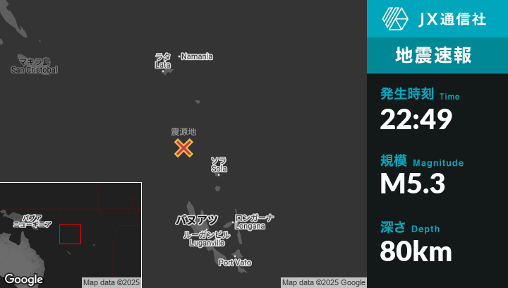 | 震源地 | バヌアツのSolaから北西159kmの地点 |