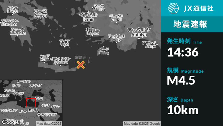 | 震源地 | ギリシャのFryから西北西33kmの地点 |