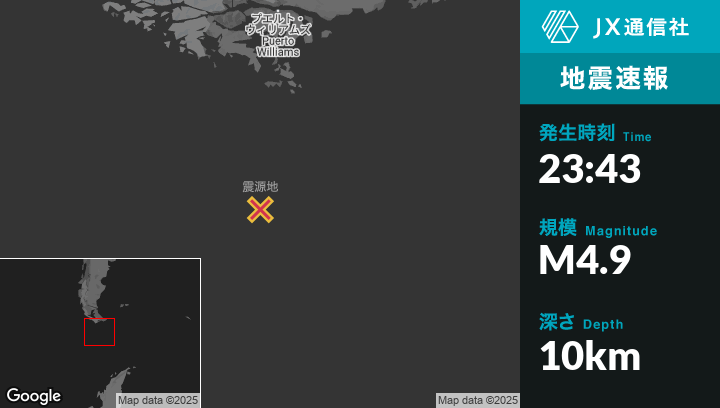 | 震源地 | アルゼンチンのUshuaiaから南277kmの地点 |