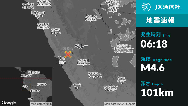 | 震源地 | ペルーのPacaraosから北東25kmの地点 |