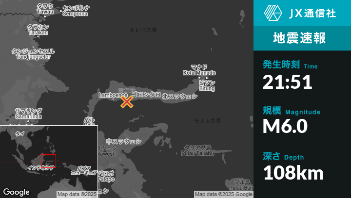 | 震源地 | インドネシアのGorontaloから西165kmの地点 |