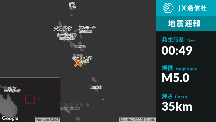 | 震源地 | バヌアツのPort-Vilaから北西42kmの地点 |
