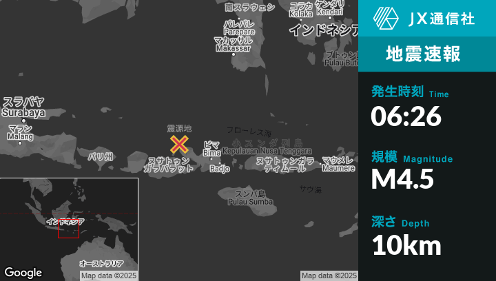| 震源地 | インドネシアのPototanoから北北東63kmの地点 |