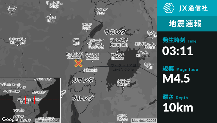 | 震源地 | ウガンダのNtungamoから北26kmの地点 |
