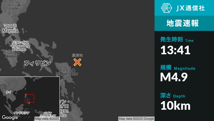 | 震源地 | フィリピンのAluganから北東74kmの地点 |