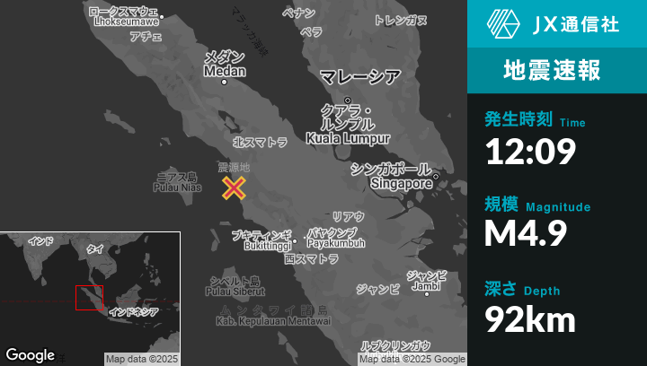 | 震源地 | インドネシアのPadangsidempuanから西南西50kmの地点 |