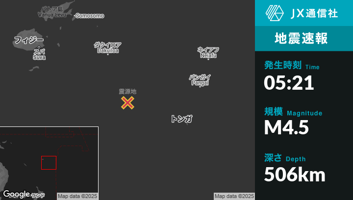 | 震源地 | トンガのHoumaから西北西256kmの地点 |