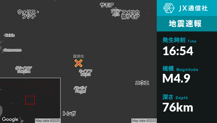 | 震源地 | トンガのNeiafuから北北西130kmの地点 |