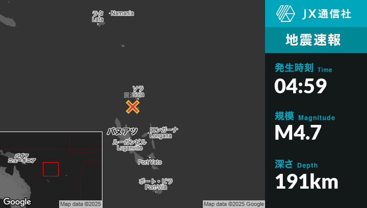 | 震源地 | バヌアツのSolaから南西35kmの地点 |