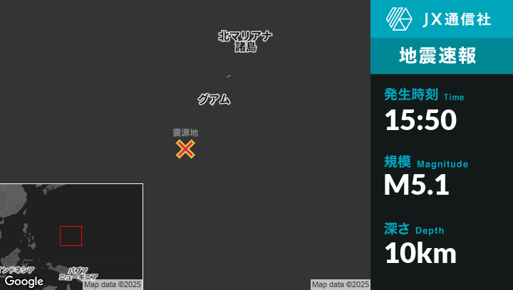 | 震源地 | グアムのMerizo Villageから南南西155kmの地点 |