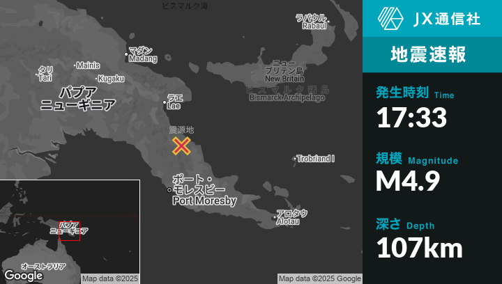 | 震源地 | パプアニューギニアのKokodaから北北西102kmの地点 |