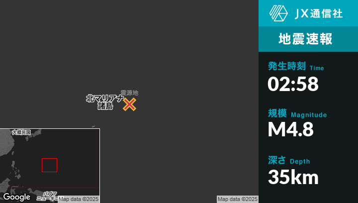 7月06日 02:58頃、北マリアナ諸島のSaipanから東113kmの地点でM4.8の地震がありました。