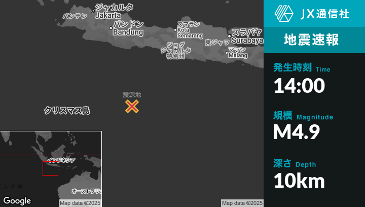 | 震源地 | インドネシアのCilacapから南南西273kmの地点 |