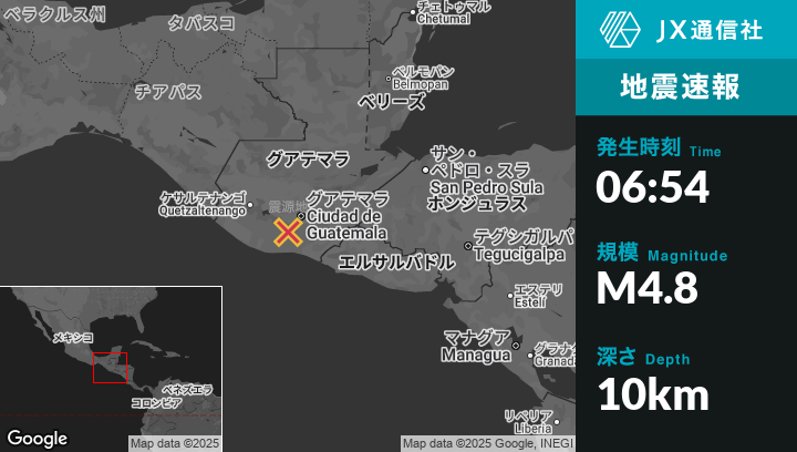 | 震源地 | グアテマラのAlotenangoから南東6kmの地点 |