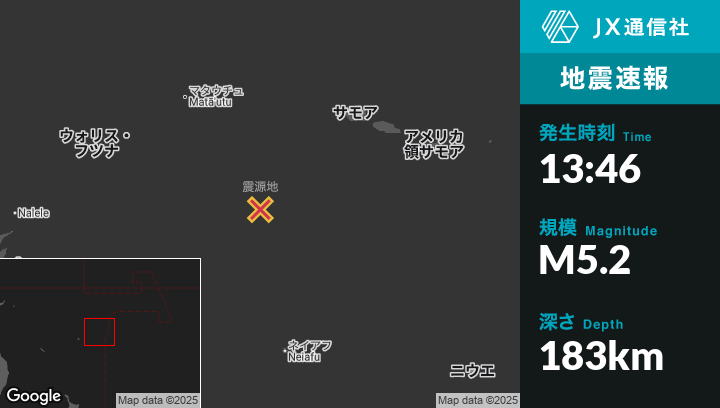 7月10日 13:46頃、トンガのHihifoから西北西89kmの地点でM5.2の地震がありました。