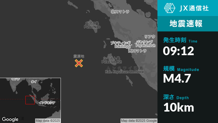 | 震源地 | インドネシアのTeluk Dalamから南南西271kmの地点 |