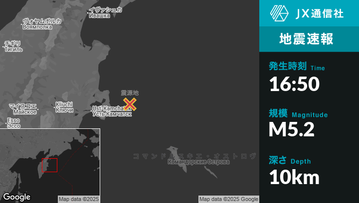 | 震源地 | ロシアのUst’-Kamchatsk Staryyから東北東106kmの地点 |