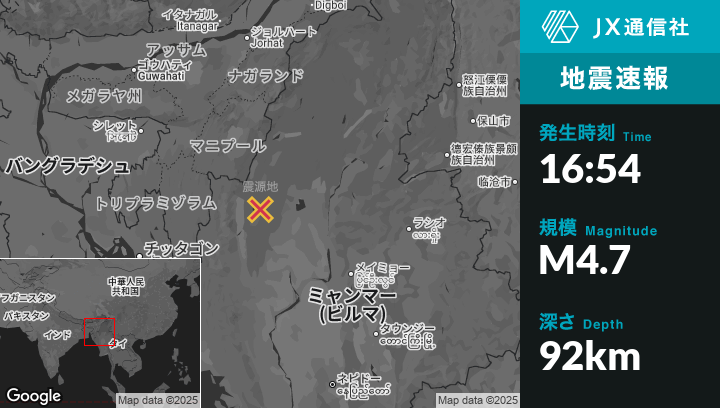 | 震源地 | ビルマ(ミャンマー)のMawlaikから南南東22kmの地点 |