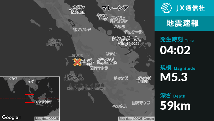 | 震源地 | インドネシアのPariamanから西北西111kmの地点 |