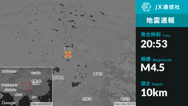 | 震源地 | 中国のNagquから北西258kmの地点 |