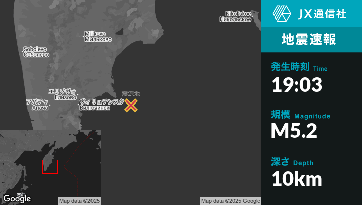 | 震源地 | ロシアのPetropavlovsk-Kamchatskyから東138kmの地点 |