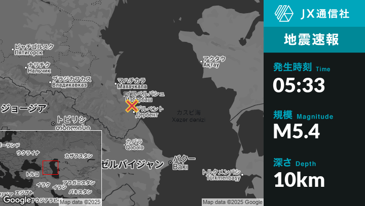| 震源地 | ロシアのNovokayakentから東17kmの地点 |