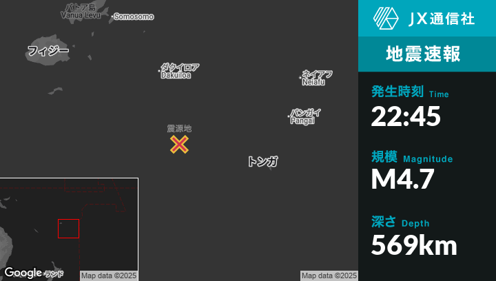 | 震源地 | トンガのHoumaから西北西273kmの地点 |