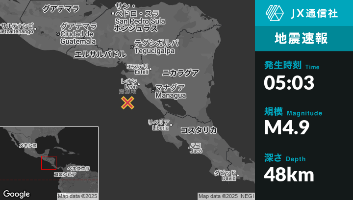 | 震源地 | ニカラグアのCorintoから南南西85kmの地点 |